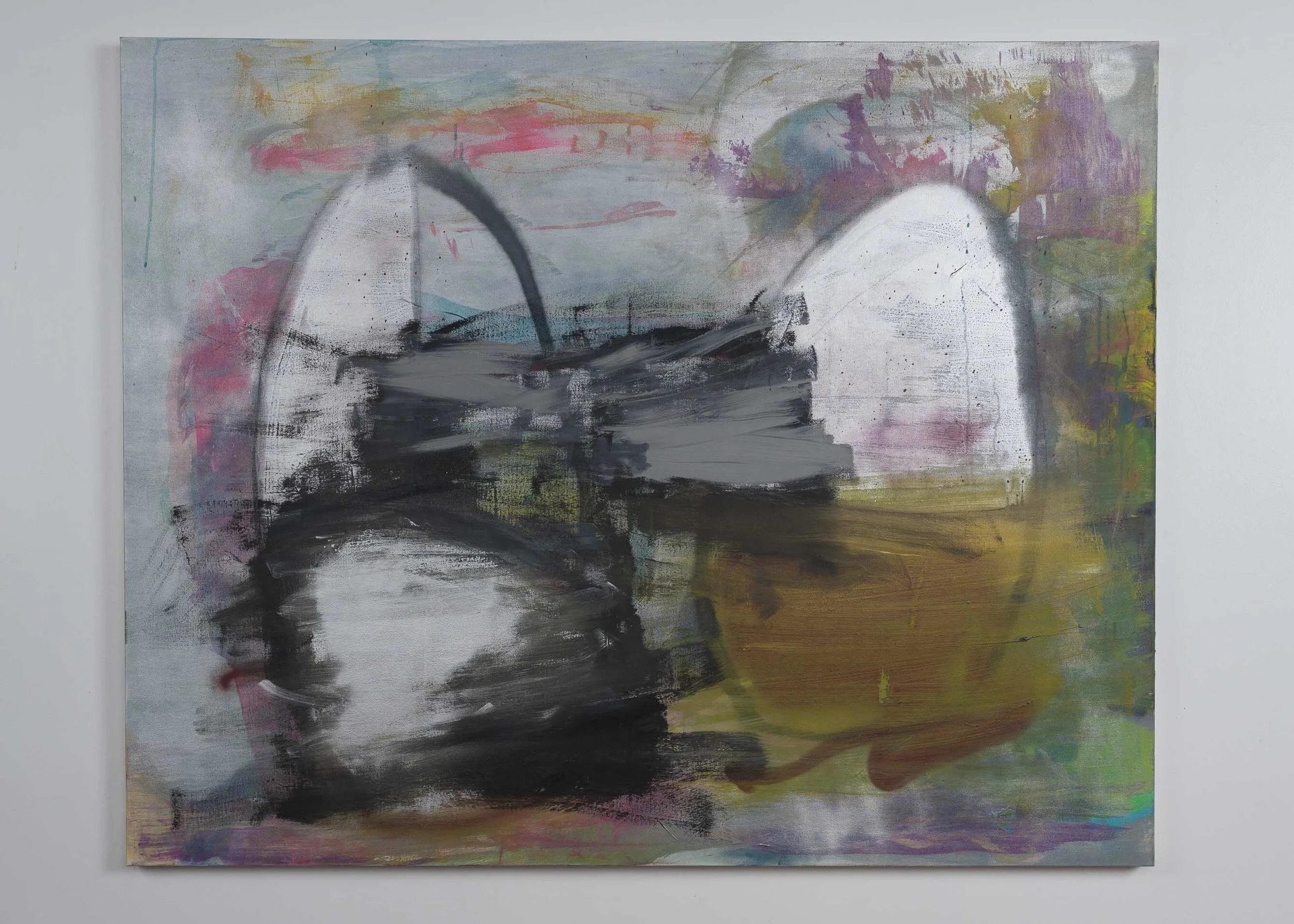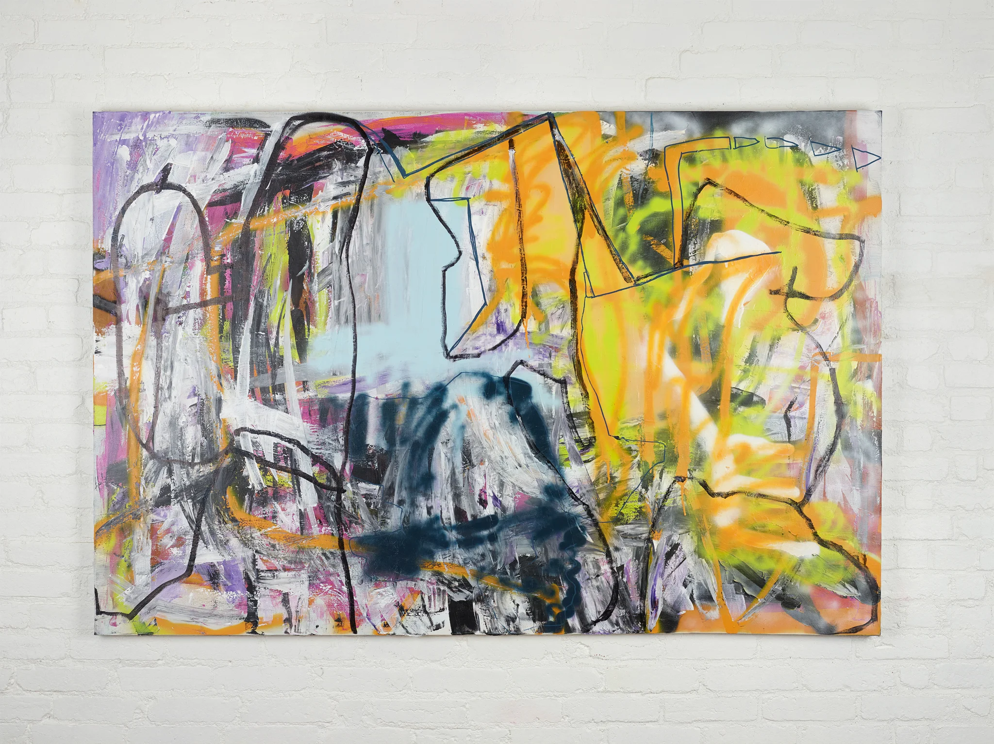 Untitled (5x6 ft; acrylic, paper, spray paint)
